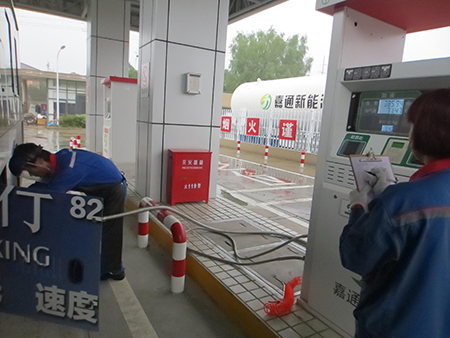 公交東場(chǎng)LNG加氣站工程于2016年2月初開工建設(shè),8月下旬完成施工。該加氣站設(shè)置一個(gè)60M3低溫儲(chǔ)罐,2臺(tái)單槍加液機(jī),設(shè)計(jì)加氣能力2萬m3/d,每天可滿足約200輛LNG公交車的加氣需求,是嘉興市區(qū)范圍內(nèi)首座投入使用的LNG加氣站。
