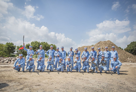 為圓滿完成此次微視頻的拍攝工作,國鴻公司高度重視,精心安排,從5月中旬接到大賽通知到9月初正式成片,歷經(jīng)4個月,經(jīng)歷了確立作品方向,人物摸底篩選,對人物事跡進(jìn)行走訪、調(diào)查、梳理,劇本撰寫,視頻拍攝及后期制作等多個環(huán)節(jié)。拍攝期間時值正夏,烈日當(dāng)空,拍攝地條件艱苦,劇中的演員都是公司各單位的員工。為了更好地呈現(xiàn)這部作品,員工們克服各種困難,合理安排好拍攝和本職工作。在似火的驕陽下,按攝制組的要求一遍遍地重復(fù)拍攝,在土堆里摸爬滾打,在不通風(fēng)的場地反復(fù)走位,幾個小時的拍攝結(jié)束,汗水和泥土混在了一起,軍服上結(jié)起了鹽花,身上也布滿了蚊蟲叮咬的痕跡。雖然拍攝過程艱辛,但員工們都覺得這是一場令人難忘的經(jīng)歷,這不僅是一次微視頻的拍攝,也是國鴻人不畏艱苦、踏實肯干的品格接力,更是“不忘初心、牢記使命、永遠(yuǎn)奮斗”精神的傳承!