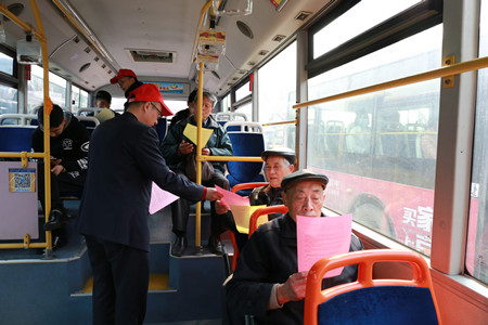 活動(dòng)現(xiàn)場(chǎng),公交志愿者們頭戴小紅帽,手拿宣傳單,積極向廣大市民宣傳《憲法》相關(guān)基本常識(shí)和《浙江省城市公共交通車輛乘坐規(guī)則》,并耐心解答市民問詢,為他們提供憲法、公交政策宣傳和公交出行服務(wù)。為進(jìn)一步擴(kuò)大宣傳面,志愿者們走進(jìn)車廂,向公交駕駛員和乘客們宣講相關(guān)內(nèi)容?!皫煾担钚碌摹吨腥A人民共和國(guó)憲法修正案》在今年3月11日召開的十三屆全國(guó)人大一次會(huì)議上已經(jīng)通過,您知道這個(gè)消息嗎?其實(shí),憲法和我們的生活息息相關(guān),我這里有兩份《憲法》和公交乘坐規(guī)則的宣傳單請(qǐng)您拿好,坐車的時(shí)候可以看一看,了解下我們公民的基本權(quán)利、義務(wù)和公交乘坐規(guī)則等知識(shí)?!背丝蛡兡玫叫麄鲉魏?,都認(rèn)真地看了起來……