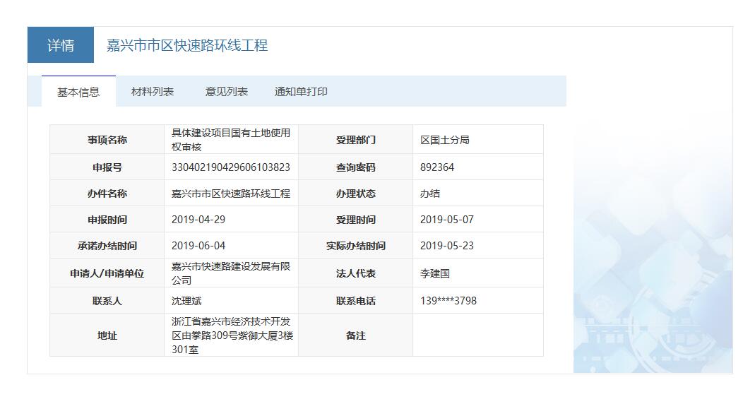 嘉興市市區(qū)快速路環(huán)線工程國有土地使用權(quán)審核服務(wù)信息