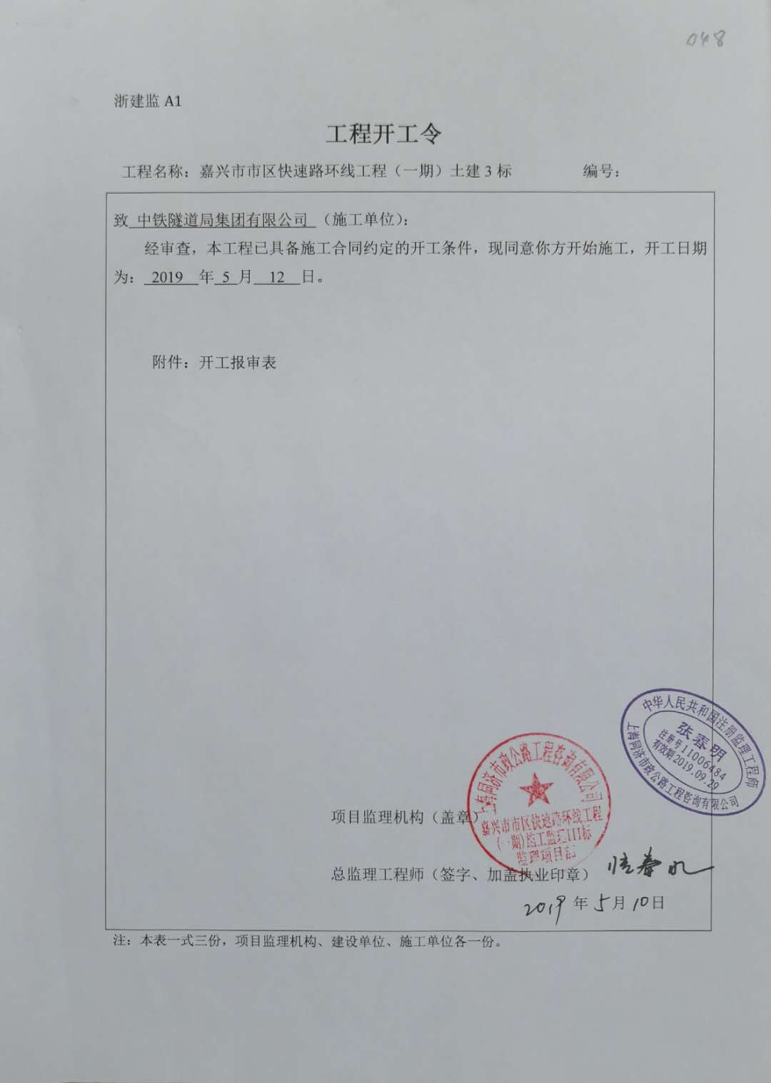 嘉興市市區(qū)快速路環(huán)線工程(一期)土建3標(biāo)開工時(shí)間