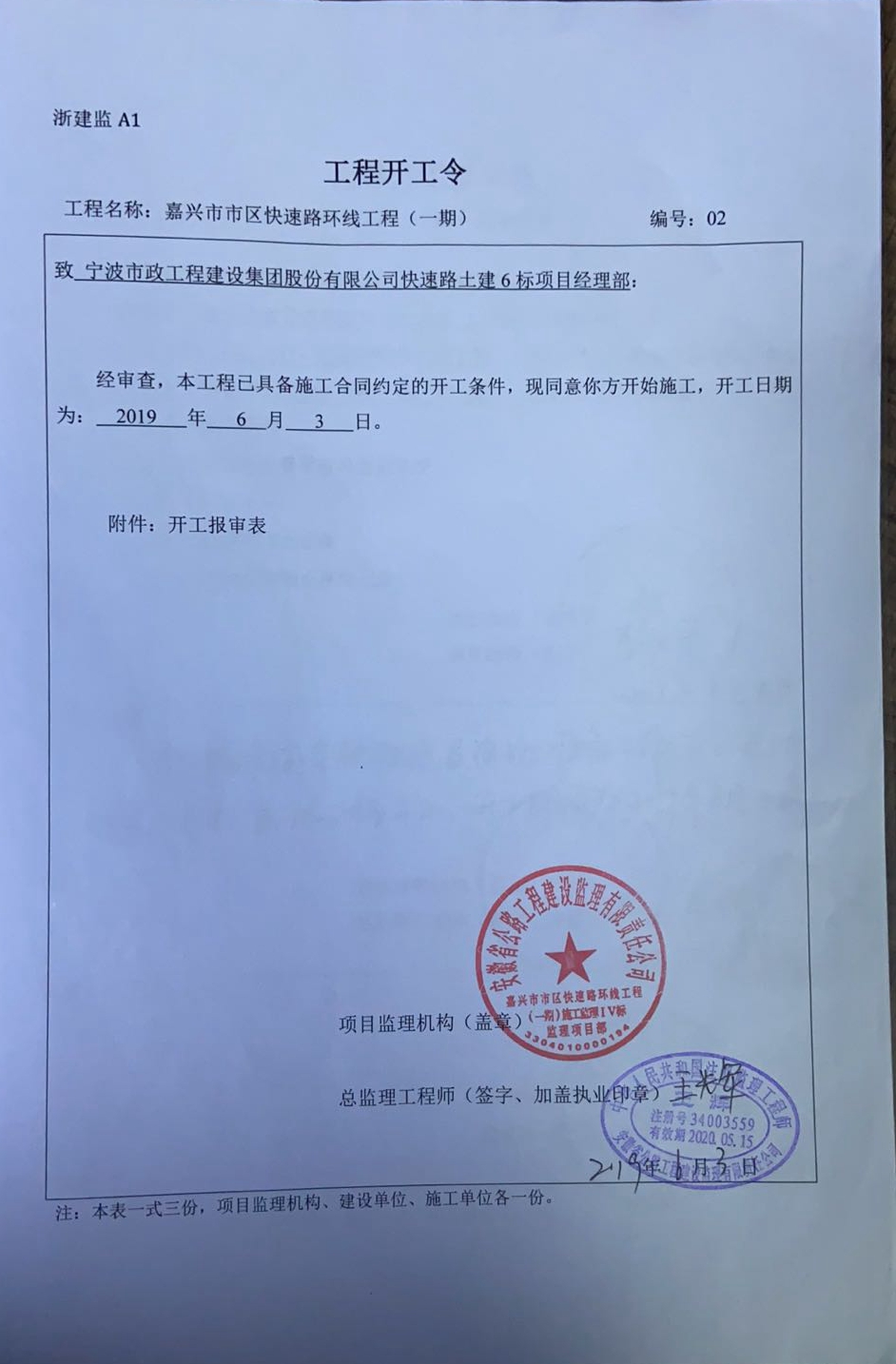 嘉興市市區(qū)快速路環(huán)線(xiàn)工程(一期)土建6標(biāo)開(kāi)工時(shí)間