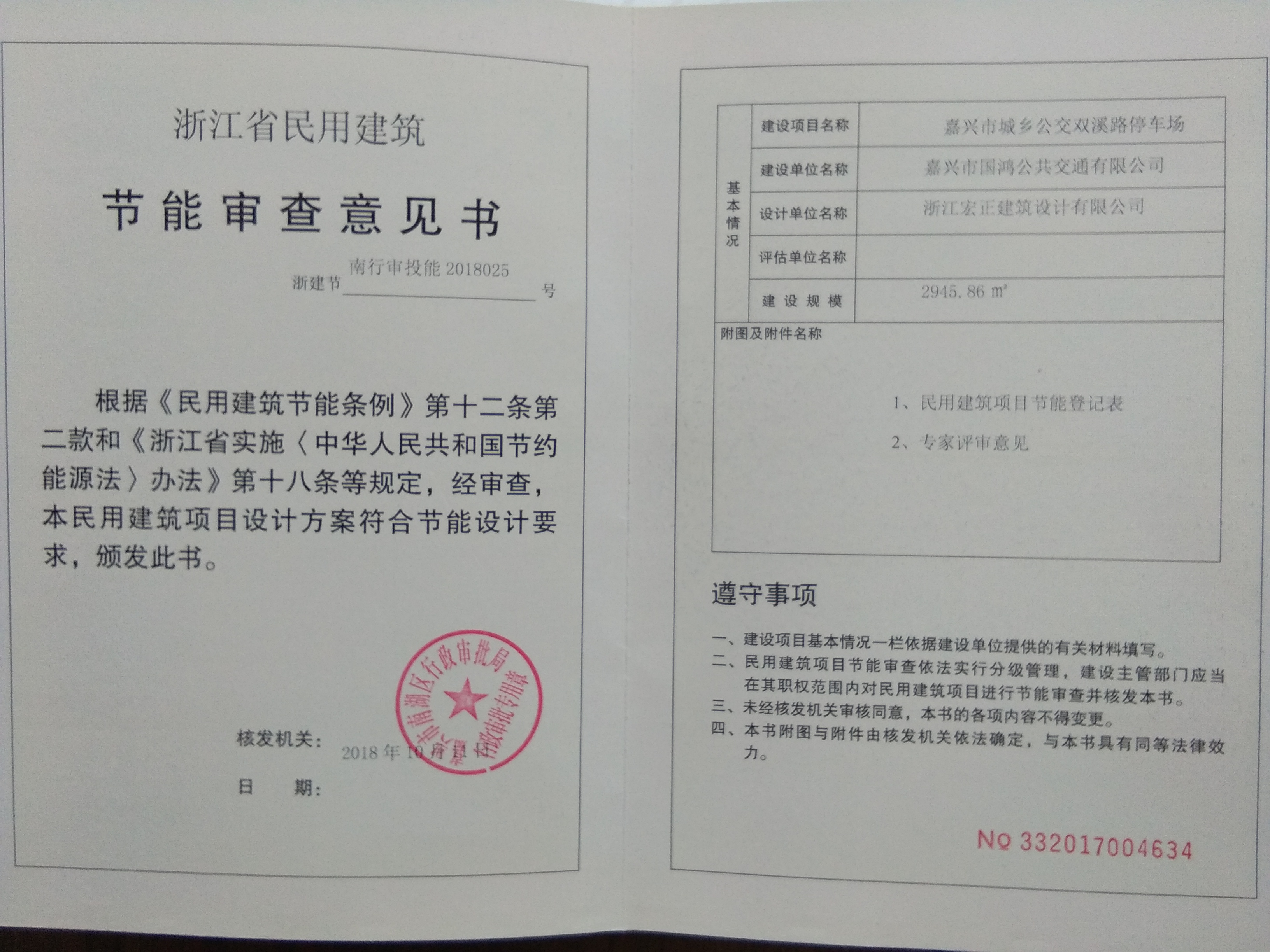嘉興市城鄉(xiāng)公交雙溪路停車場(chǎng)項(xiàng)目節(jié)能審查意見書