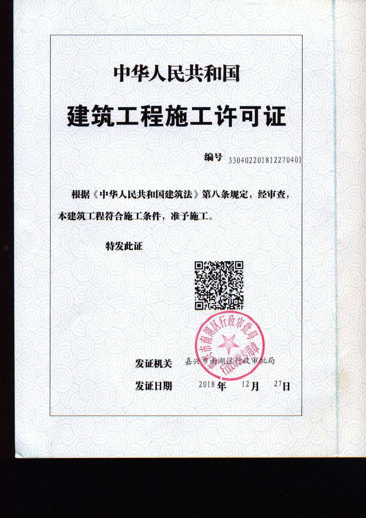 嘉興市城鄉(xiāng)公交雙溪路停車場項目建筑工程施工許可證