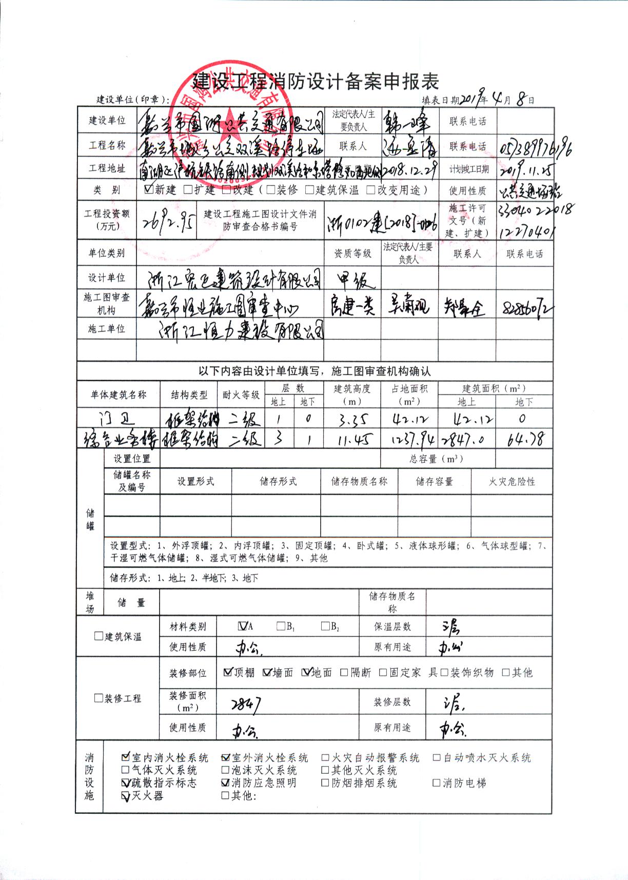 嘉興市城鄉(xiāng)公交雙溪路停車場項(xiàng)目消防設(shè)計備案申報表