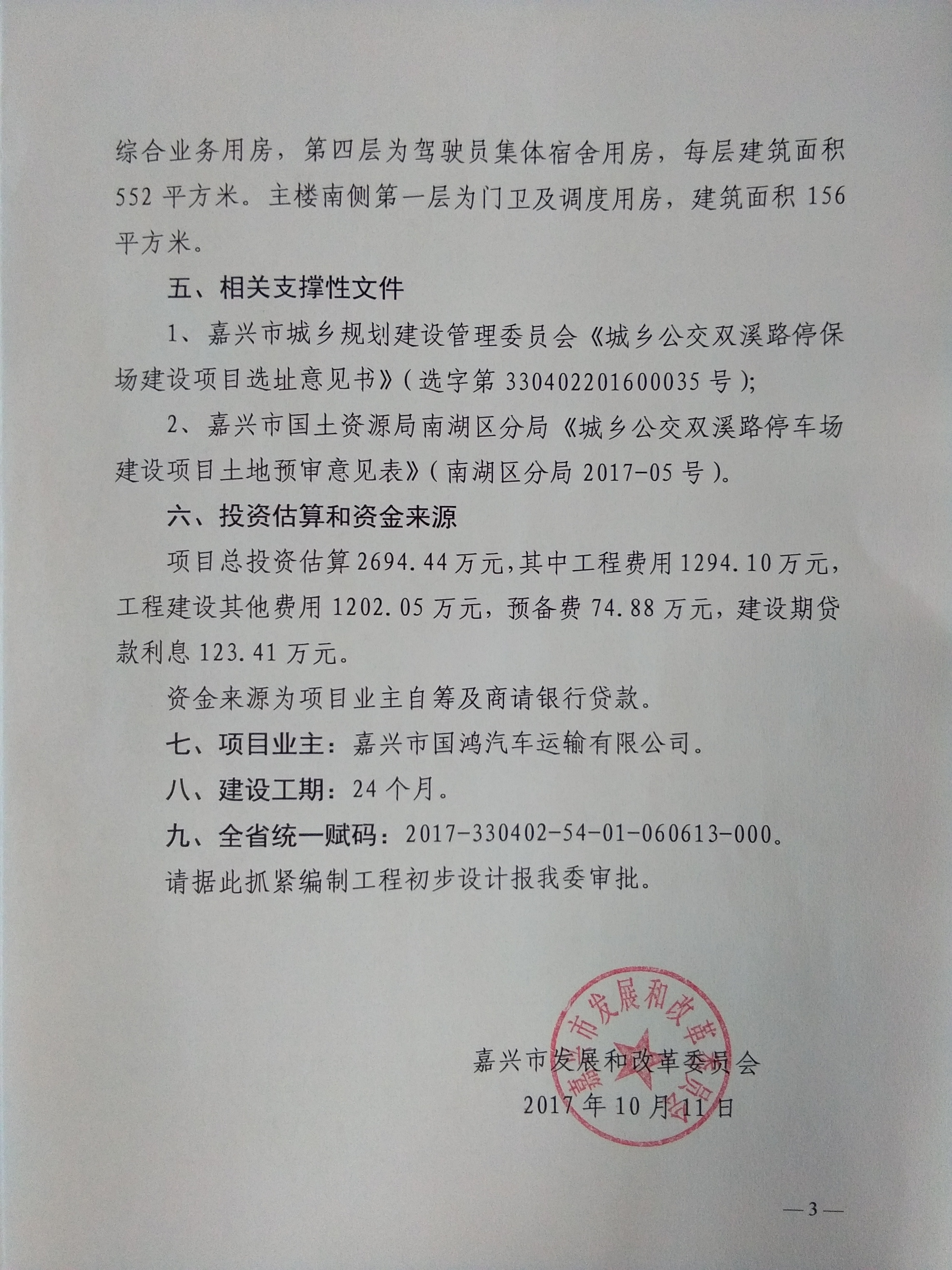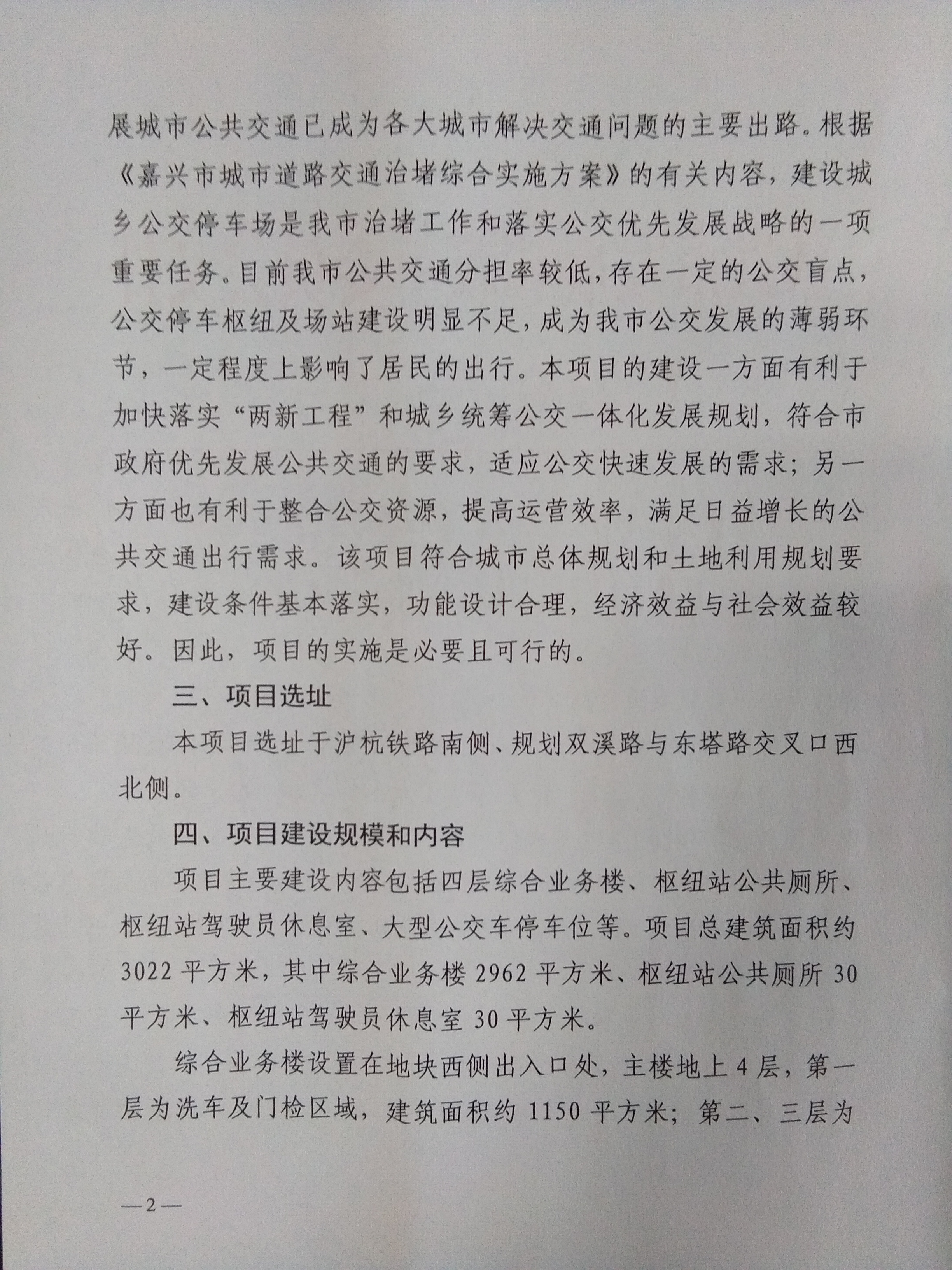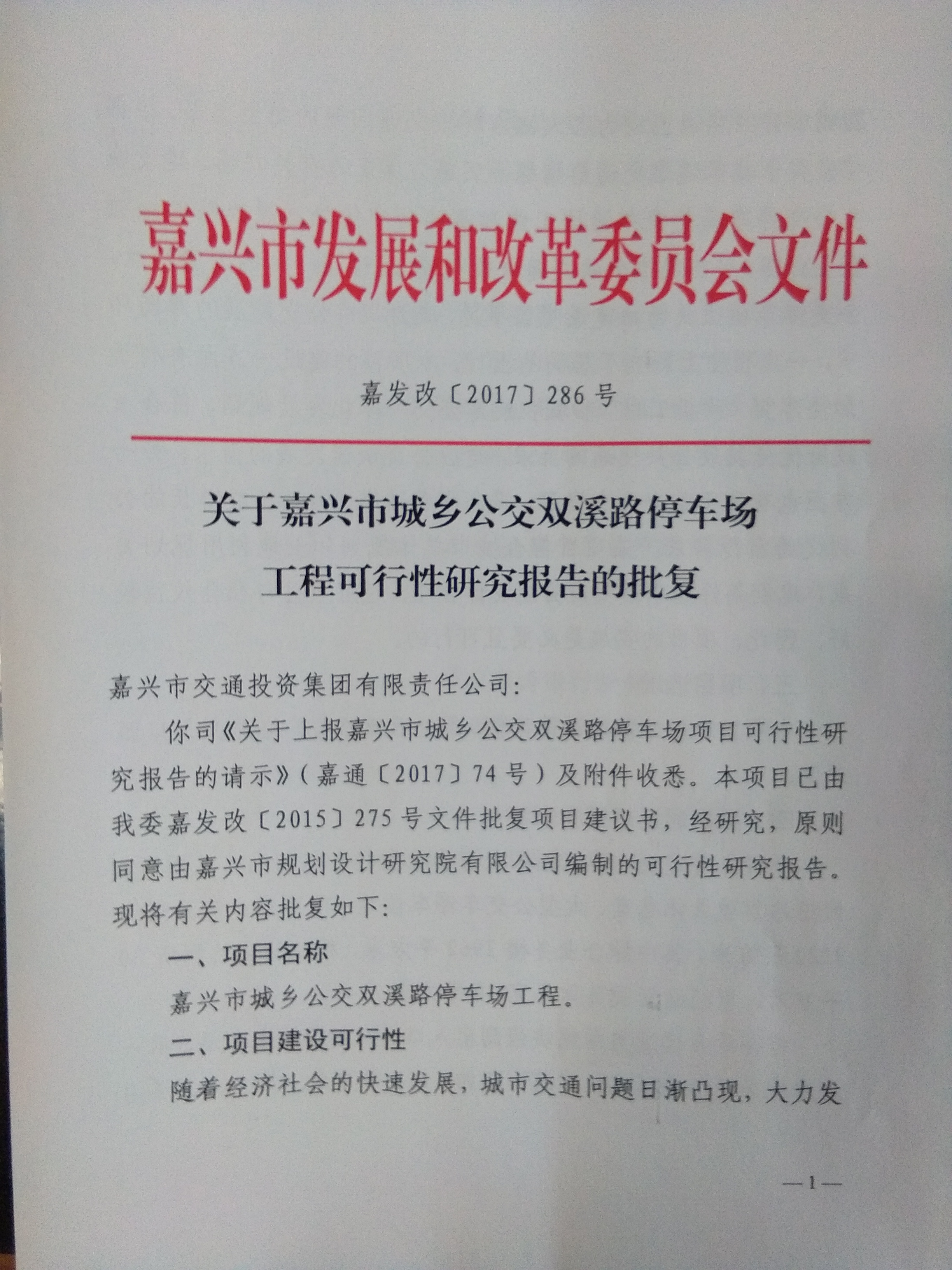 嘉興市城鄉(xiāng)公交雙溪路停車場工程可行性研究報告的批復(fù)