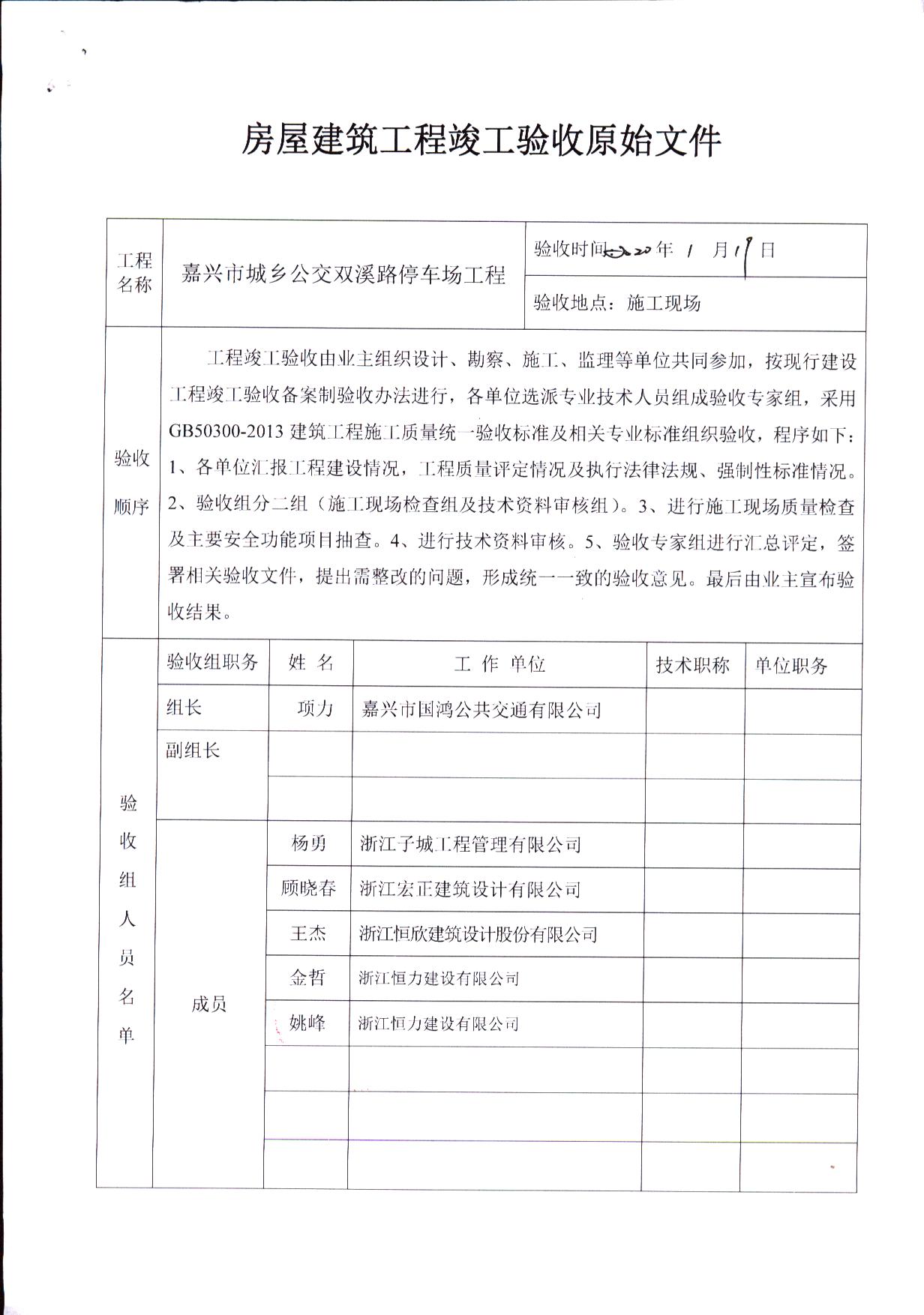 嘉興市城鄉(xiāng)公交雙溪路停車場項目竣工驗收文件